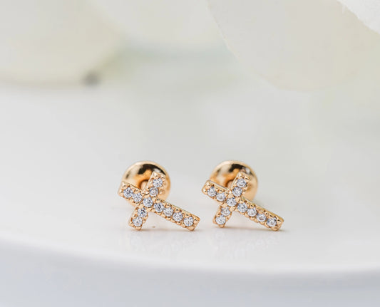 14K Gold-Plated Cross Earrings – Baptism, Communion, Cotillion, or Flower Girl Gift