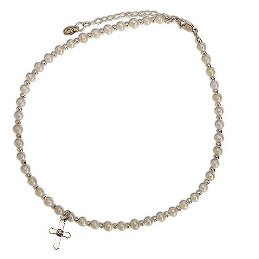 14K Gold-Plated Kids Cross CZ Necklace for Girls Communion